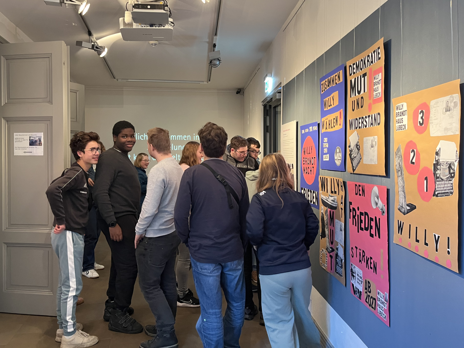 12 Jugendliche vom Campus haben im Sommer im Rahmen einer Projektwoche zusammen mit dem Willy-Brandt-Haus Lübeck kreative Poster gestaltet. Ein professioneller Grafik-Designer hat sie dabei unterstützt. Die Plakate sind bunt, kraftvoll und voller Ideen. Sie zeigen, was heute noch wichtig ist: Mut, Frieden, Freiheit und Demokratie. Willy Brandt als Mensch und Politiker hat genau dafür gekämpft. Als Bundeskanzler wollte er die Welt ein Stück gerechter machen – und seine Botschaft lebt bis heute weiter.