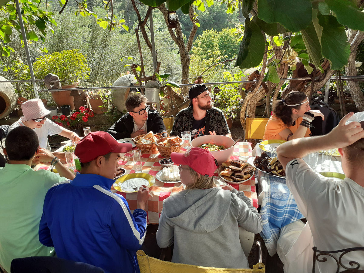 Unsere Reise begann mit drei Nächten in Athen. Dort erkundeten wir eine der ältesten Städte Europas – gegründet vor etwa 7.500 Jahren – in all ihren historischen und modernen Facetten. Die Akropolis, einstige Festung und heiliges Zentrum der antiken Welt, war der unbestrittene Höhepunkt unserer Tage in Athen. Den Abschied von der Hauptstadt feierten wir ausgelassen beim Athens City Festival – hoch oben auf dem Lykabettus-Berg, wo sich der Blick über die Stadt erstreckt. Die meiste Zeit unserer Reise verbrachten wir jedoch mitten im Ägäischen Meer, nahe der türkischen Grenze auf der Inselperle Ikaria. Unser Ziel war es, die Lebens- und insbesondere die Arbeitsweisen auf der griechischen Insel besser zu verstehen. Neben Workshops und einer Diskussionsrunde mit Schüler:innen der Insel lag unser Schwerpunkt auf zwei Bauprojekten: Zum einen unterstützten wir eine lokale Initiative bei der Renovierung ihrer Küchenräume, zum anderen entwickelten wir gemeinsam mit einem Tischler der Insel kreative Upcycling-Ideen. Darüber hinaus bleiben uns vor allem die folgenden Eindrücke in Erinnerung: Zum einen war da die abenteuerliche und sehr ursprüngliche Übernachtung im Steinhaus: Gemeinsam wanderten wir über Stock und Stein dorthin und machten es uns als Gruppe auf engem Raum gemütlich – ein Erlebnis voller Gemeinschaft und Naturverbundenheit. Zum anderen der Besuch bei der lokalen Imkerin: Dort durften wir die Bienen sogar mit bloßen Händen berühren und erfuhren eindrucksvoll, welche zentrale Rolle sie für unser Ökosystem spielen. Wir halten es für sehr wichtig, jungen Menschen mit Behinderung die Möglichkeit zu geben, die Welt zu entdecken. Denn wer reist, kehrt nie als derselbe zurück – sondern reicher an Eindrücken, Erkenntnissen und Erinnerungen, die ein Leben lang bleiben. |