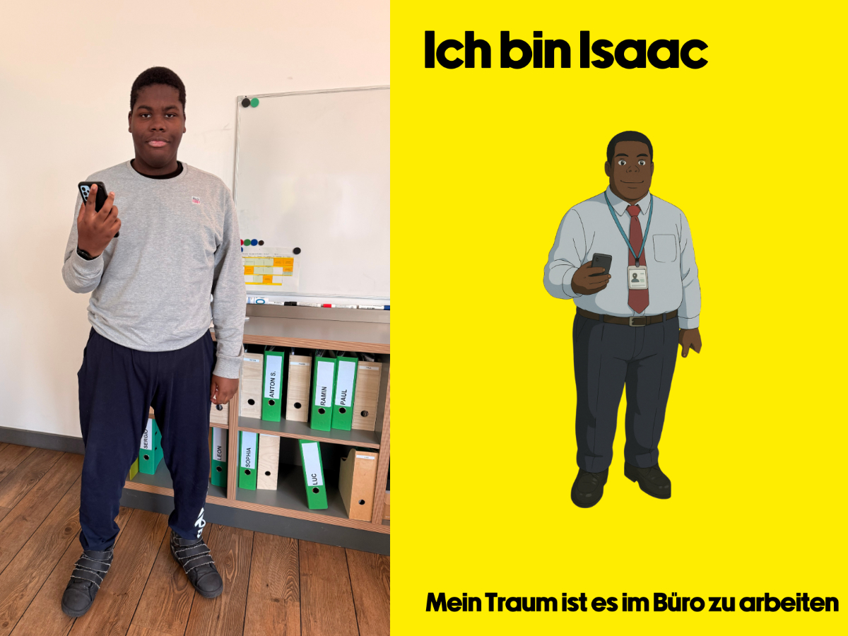 Für unser Projekt haben wir Schüler*innen nach ihrem Traumberuf gefragt und sie fotografiert. Mit Hilfe von künstlicher Intelligenz haben wir die Bilder so gestaltet, als würden die Schüler*innen schon in ihrem Traumberuf arbeiten. Das Programm, dass wir benutzt haben, heißt ChatGPT. Die Ergebnisse sahen so aus wie aus einem Comic, weil wir das cool finden.