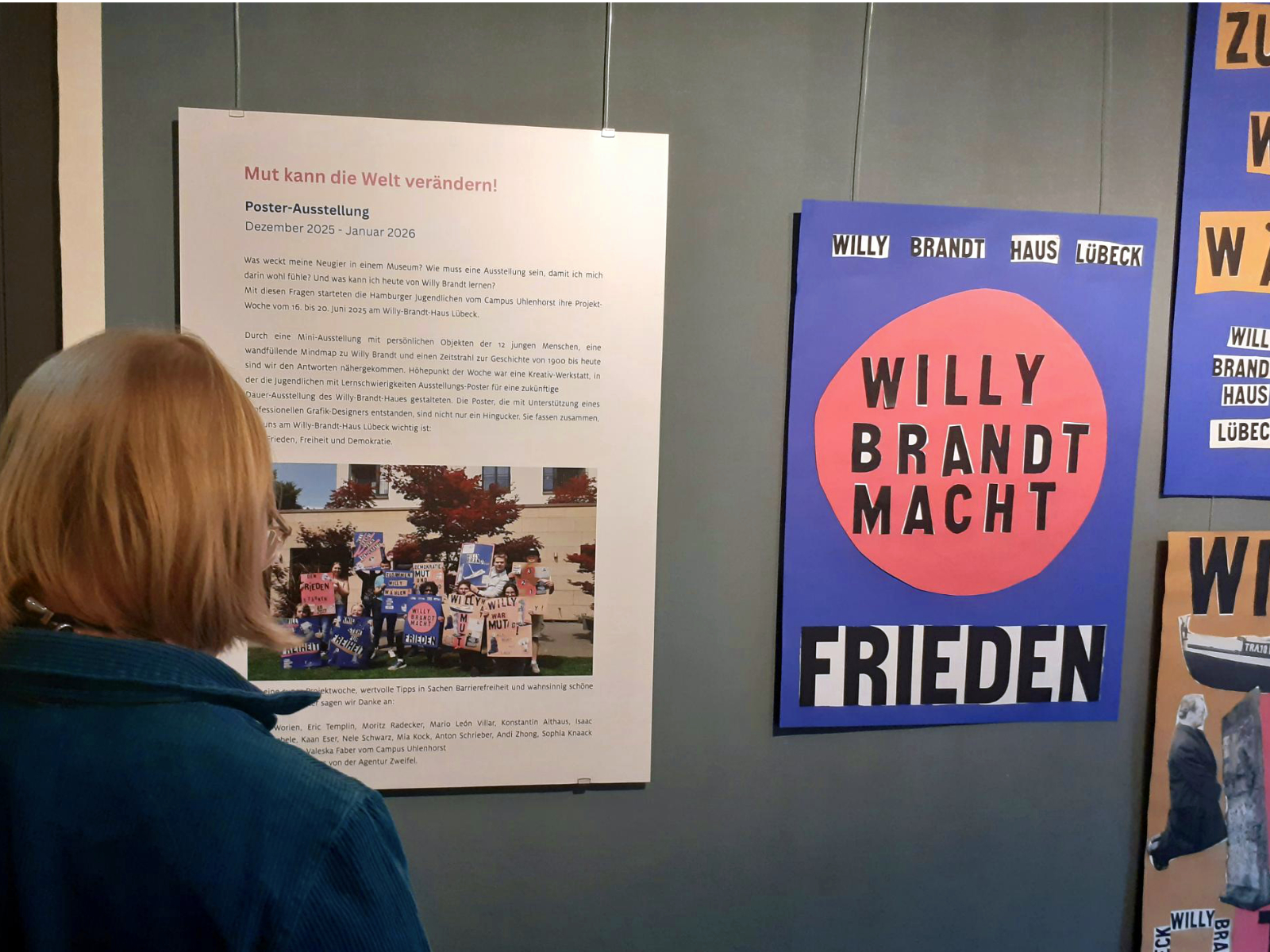 12 Jugendliche vom Campus haben im Sommer im Rahmen einer Projektwoche zusammen mit dem Willy-Brandt-Haus Lübeck kreative Poster gestaltet. Ein professioneller Grafik-Designer hat sie dabei unterstützt. Die Plakate sind bunt, kraftvoll und voller Ideen. Sie zeigen, was heute noch wichtig ist: Mut, Frieden, Freiheit und Demokratie. Willy Brandt als Mensch und Politiker hat genau dafür gekämpft. Als Bundeskanzler wollte er die Welt ein Stück gerechter machen – und seine Botschaft lebt bis heute weiter.