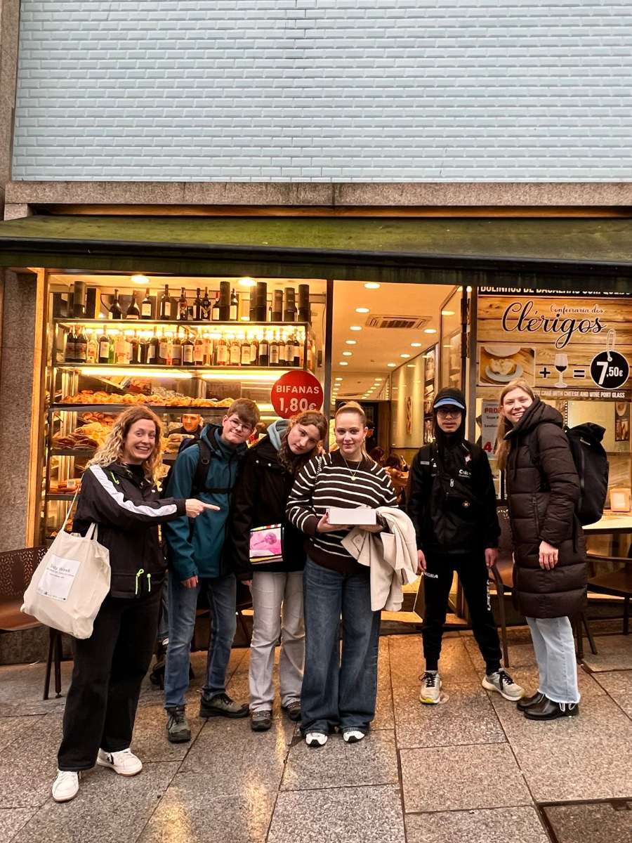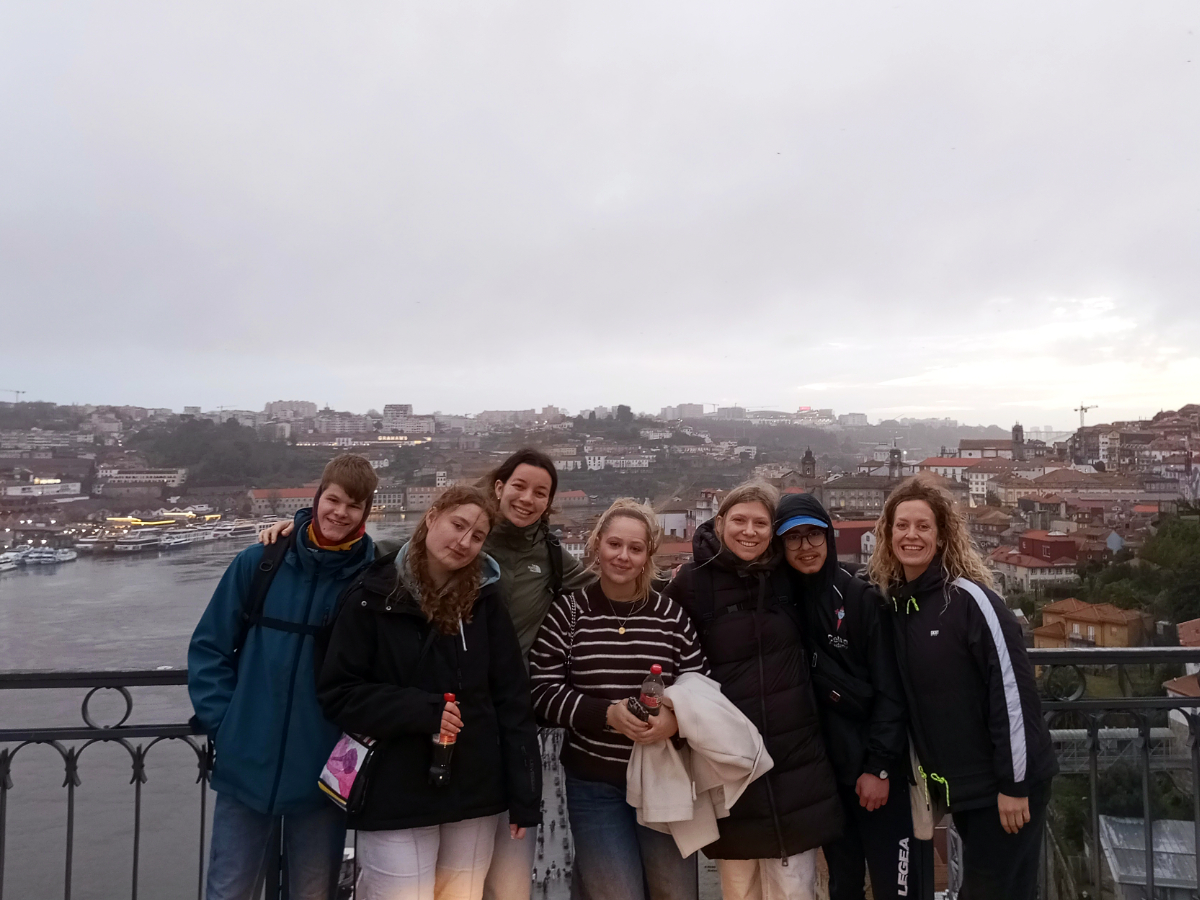Anfang Februar verbrachten 5 Schüler*innen und 4 Lerncoaches eine Woche in Paredes, Portugal. Möglich wurde die Reise durch das Programm Erasmus+. Über 140 Menschen aus Portugal, Spanien, Deutschland und Frankreich nahmen daran teil. Es war eine Woche voller Austausch, neuer Ideen und gemeinsamer Erlebnisse. In den inklusiven Workshops konnten wir unsere Gedanken und Wünsche für die Zukunft teilen. Es gab viele verschiedene Angebote zu Themen wie Tanz, Theater, Nachhaltigkeit, digitale Teilhabe und kreative Projekte. Wir haben zusammen an Aufführungen und Videos gearbeitet. Am Ende haben wir alles in einer großen Präsentation gezeigt. So konnten wir sehen, woran die anderen gearbeitet haben und viel voneinander lernen. Besonders schön waren die Abende mit Essen, Musik und Tanz. Dort haben wir neue Freundschaften geschlossen und erlebt, dass Europa Menschen verbindet. Auch der Ausflug nach Porto und abendliche Spaziergänge in Paredes haben die Woche besonders gemacht. Die Reise war spannend und lehrreich. Wir haben viel Neues gelernt, kreative Ideen ausprobiert und gesehen, dass jede und jeder etwas bewegen kann. Wir sind sehr dankbar für diese Erfahrung und nehmen viele schöne Erinnerungen mit nach Hause.