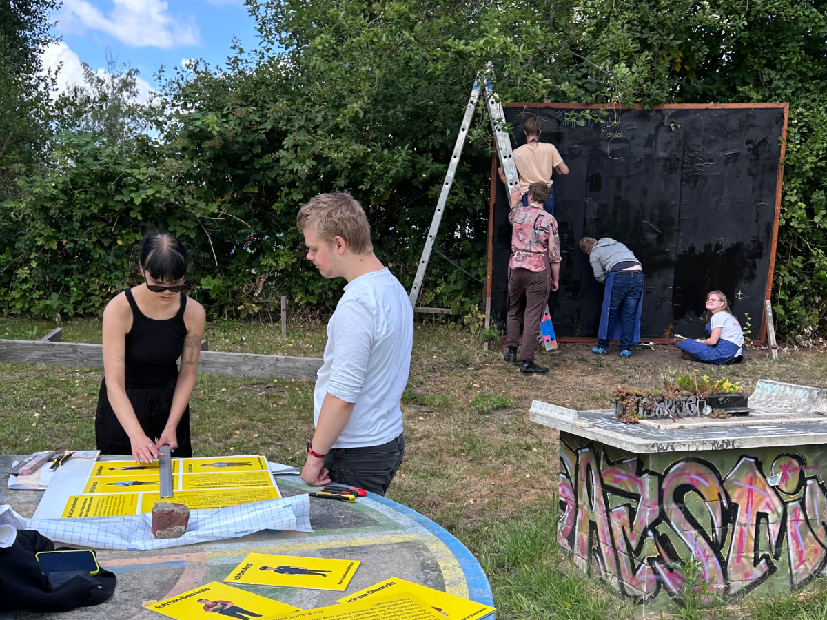 Die Bilder haben wir lebensgroß ausgedruckt und auf dem Kunstfestival in Wilhelmsburg gezeigt. Das Kunstfestival hieß früher Artville, jetzt heißt es „Kunstgucken“. Einige Bilder waren dort einfach an die Wand geklebt und ein paar wurden auf einer Holz-Konstruktion befestigt und standen frei im Raum. Damit wollten wir sichtbar machen: Auch Menschen mit Behinderung haben Träume und Zukunftswünsche. Das wollten wir allen Besucher*innen des Kunstfestivals zeigen.
